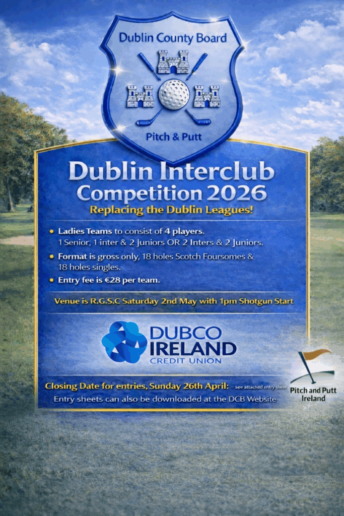 The Dublin County Board manages the game of Pitch and Putt in Dublin, organising county level championships and competitions while acting as the governing body for clubs through the city and county